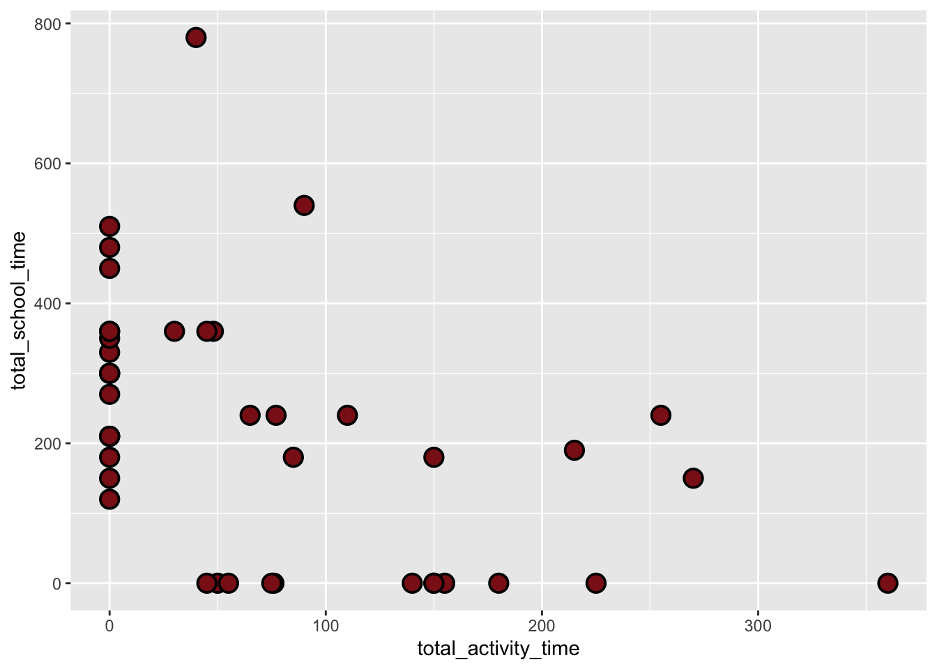 total_activity_time ~ total_school_time, # formula: response variable ~ predictor variable