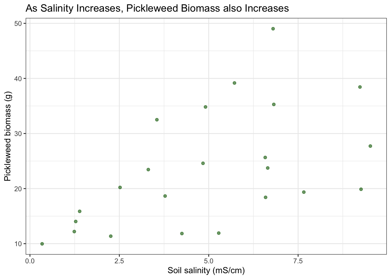 title = "As Salinity Increases, Pickleweed Biomass also Increases") +